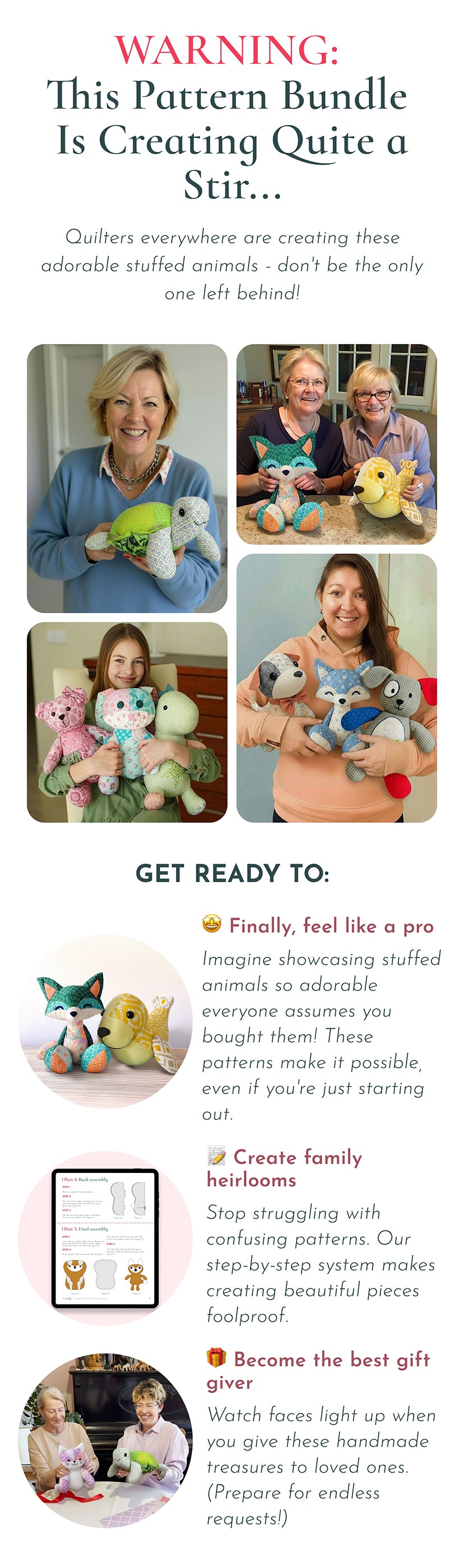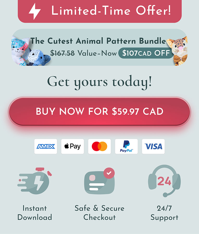 If you need any help with your plushie bundle pattern, don’t hesitate to reach out! Our friendly customer support team is here to assist you with any questions or challenges you may face. Whether you need help with the pattern instructions or tips for assembly, we’re just a message away to guide you through the process. Email: support@mrsquilty.com