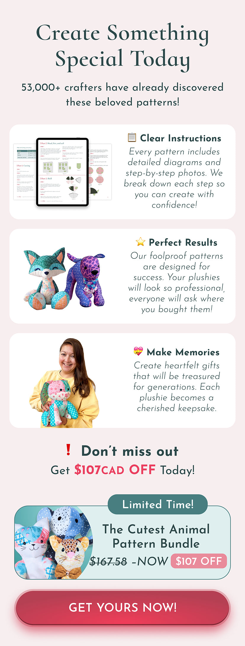 Our plushie bundle patterns are designed to be fun for all skill levels! Whether you’re a beginner, intermediate, or advanced crafter, you’ll find the instructions easy to follow and adaptable to your experience level. Just take your time and enjoy the process!